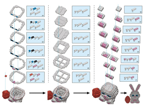 - 【Mini Building Block Sets】 The easter small rabbit is made of 1598 pieces of top-quality MINI building bricks. Compared with the traditional size building sets, this animal party favors toys for kids and has better compactness and higher occlusion between the building blocks. Please note that this is the MINI building block, which means some of the blocks are less than 10mm.